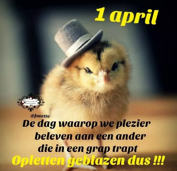 1 april De dag waarop we... 1 april De dag waarop we plezier beleven aan een ander die in een grap trapt Opletten geblazen dus !!! Link: HTML: BB code: Meer 1 april Plaatjes Vergelijkbare afbeeldingen