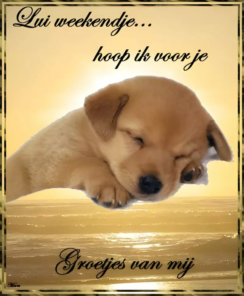 Lui weekendje... hoop ik... Lui weekendje... hoop ik voor je Groetjes van mij Link: HTML: BB code: Meer Weekend Plaatjes Vergelijkbare afbeeldingen