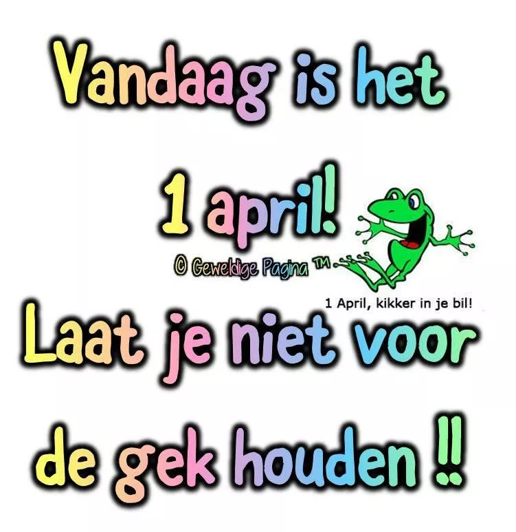 Vandaag is het 1 april!... Vandaag is het 1 april! Laat je niet voor de gek houden!! Link: HTML: BB code: Meer 1 april Plaatjes Vergelijkbare afbeeldingen