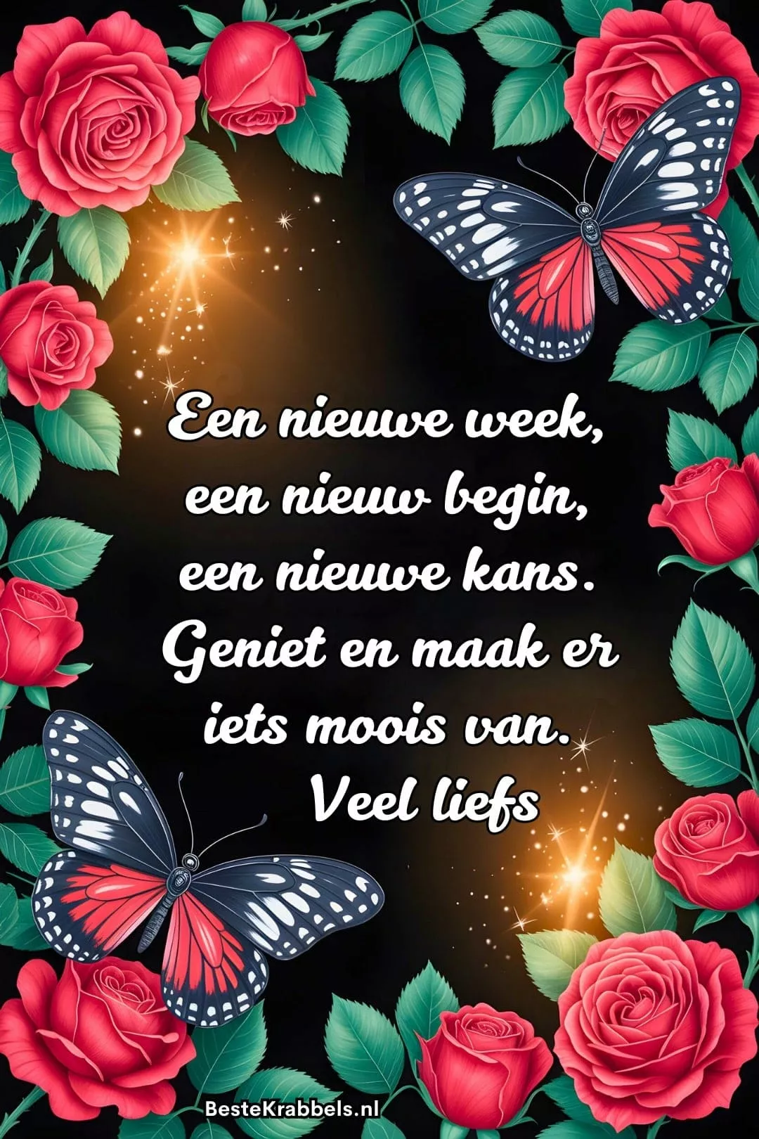Een nieuwe week, een nieuw... Een nieuwe week, een nieuw begin, een nieuwe kans. Geniet en maak er iets moois van. Veel liefs. Link: HTML: BB code: Meer Fijne week Plaatjes Vergelijkbare afbeeldingen