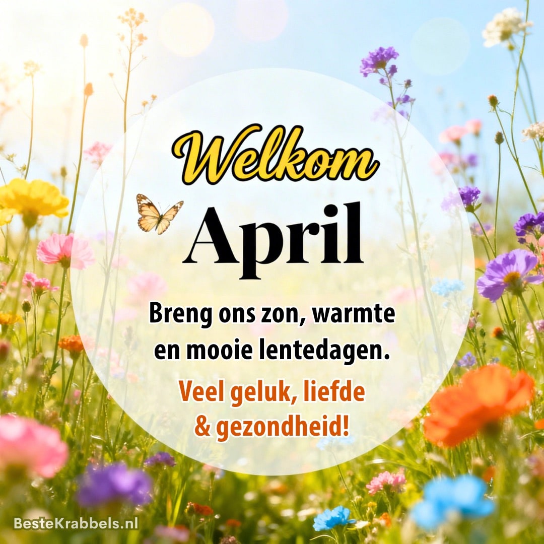 Welkom april. Breng ons... Welkom april. Breng ons zon, warmte en mooie lentedagen. Veel geluk, liefde & gezondheid! Link: HTML: BB code: Meer April Plaatjes Vergelijkbare afbeeldingen